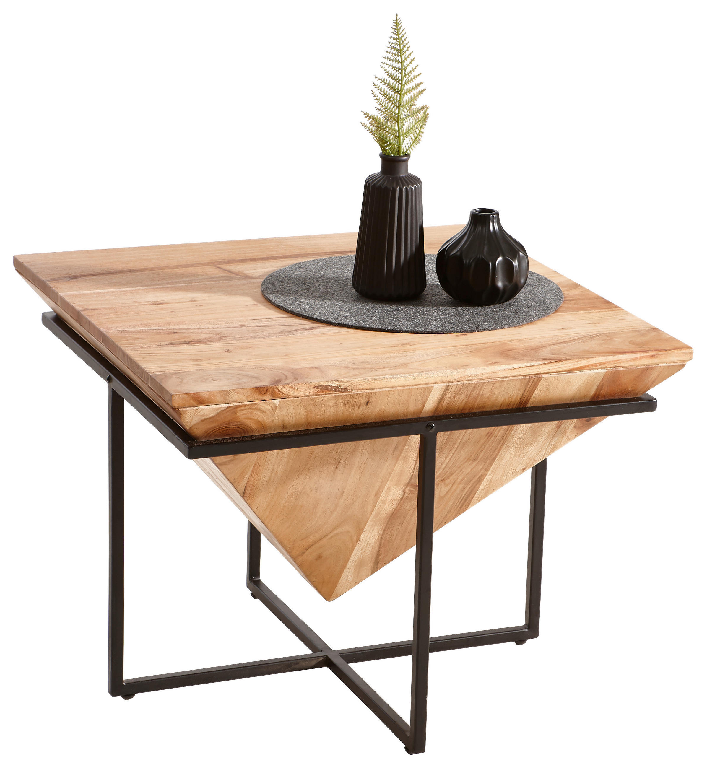 Couchtisch Aus Akazie Teilmassiv Mit Eisengestell