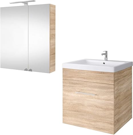 Planetmobel Waschtischunterschrank Mit Spiegelschrank Badmobel Set 60cm Fur Badezimmer Gaste Wc Sonoma Eiche Amazon De Kuche Haushalt Wohnen